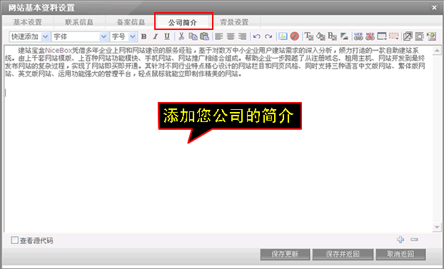 这里主要是上传备案文件(备案文件要登陆到www.miibeian.gov.cn去下载),备案号码在上传好备案文件后自动获取,无需填写,填写完后记得点击“保存更新”。