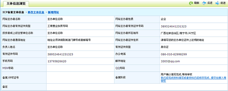 浏览您备案的网站所有者信息